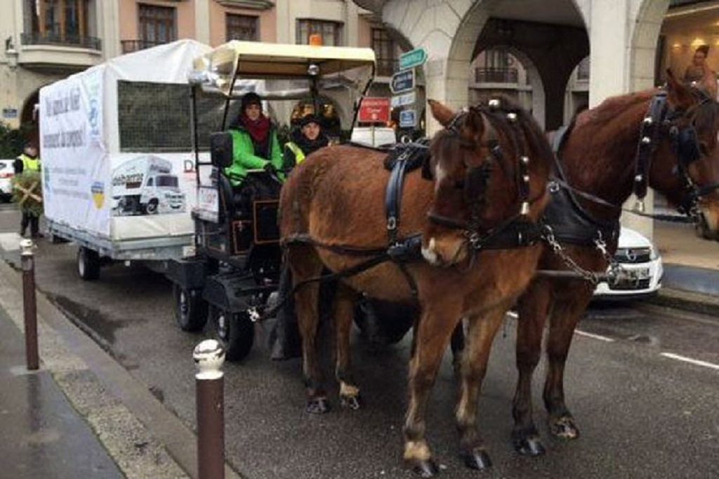 Cette année encore, l’hippomobile de Trialp ramassait les sapins de Noël dans Chambéry, les samedis 2 et 9 janvier, et Aix-les-Bains, les dimanches 3 et 10 janvier.